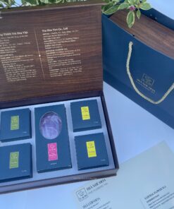 - Vỏ hộp đựng trà được làm bằng vật liệu carton lạnh có vân giả gỗ màu nâu. Hộp chắc chắn, hình thức mẫu mã đẹp, lịch sự.