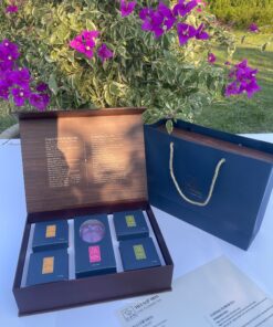 - Vỏ hộp đựng trà được làm bằng vật liệu carton lạnh có vân giả gỗ màu nâu. Hộp chắc chắn, hình thức mẫu mã đẹp, lịch sự; Kích thước hộp: 20cm*26.5cm*6.5cm